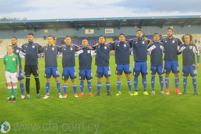 Η Κύπρος αγωνίστηκε με τους Δημητρίου, Ιωάννου, Χαραλάμπους, Μενελάου, Άδωνη, Ππούνας (46’ Γενεθλίου), Παναγίδης, Γερολέμου (46’ Κατσαντώνης), Λουκά, Κωνσταντίνου (79′ Στυλιανίδης), Μ. Χαραλάμπους.